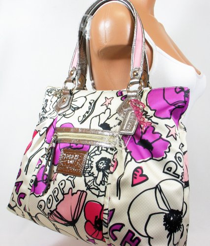 Coach Poppy Floral Petal Heart Glamour Tote Bag 16306